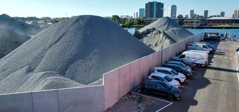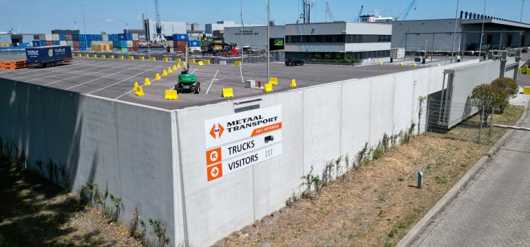 In de Waalhaven heeft Metaal Transport B.V. gekozen voor wanden van Bosch Beton om hun nieuwe logistieke terrein af te bakenen.