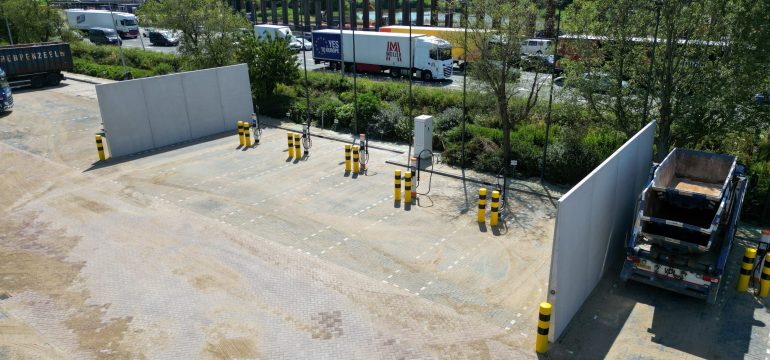 Veilig laadplein voor elektrische vrachtwagens dankzij brandwerende keerwanden