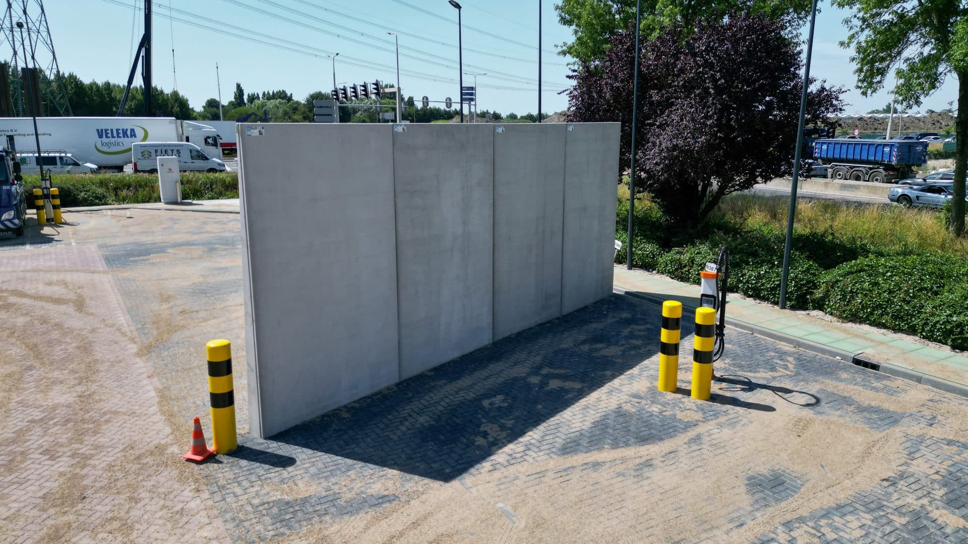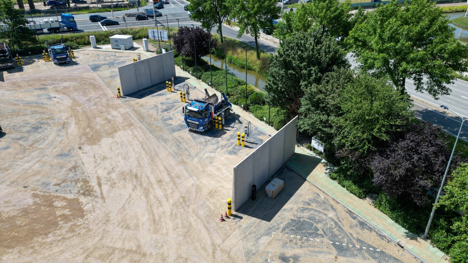 Veilig laadplein voor elektrische vrachtwagens dankzij brandwerende keerwanden