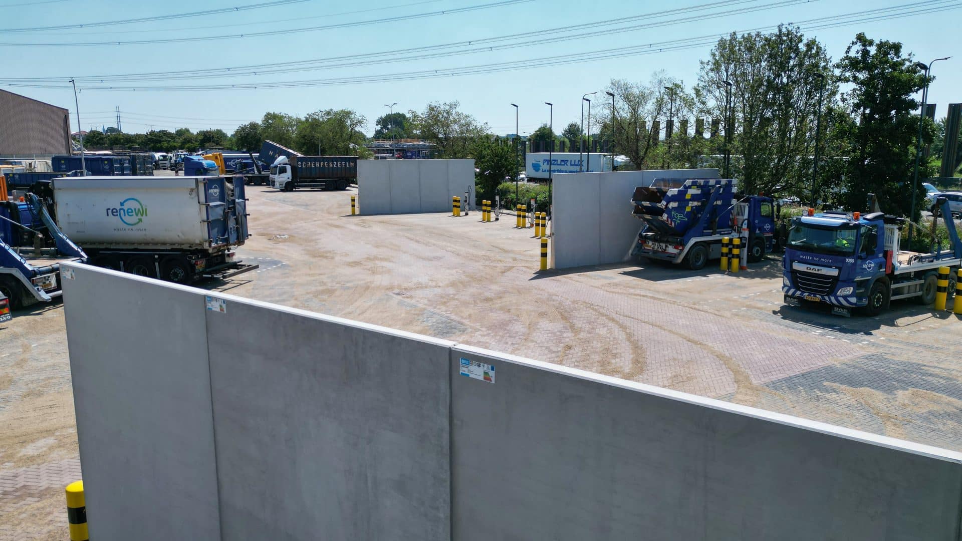 In Wateringen heeft recycler Renewi haar eerste laadplein voor elektrische vrachtwagens in gebruik genomen. Bosch Beton heeft voor dit project prefab keerwanden geleverd als brandwerende tussenwand. Met deze wanden is het laadplein beschermd tegen brandoverslag.